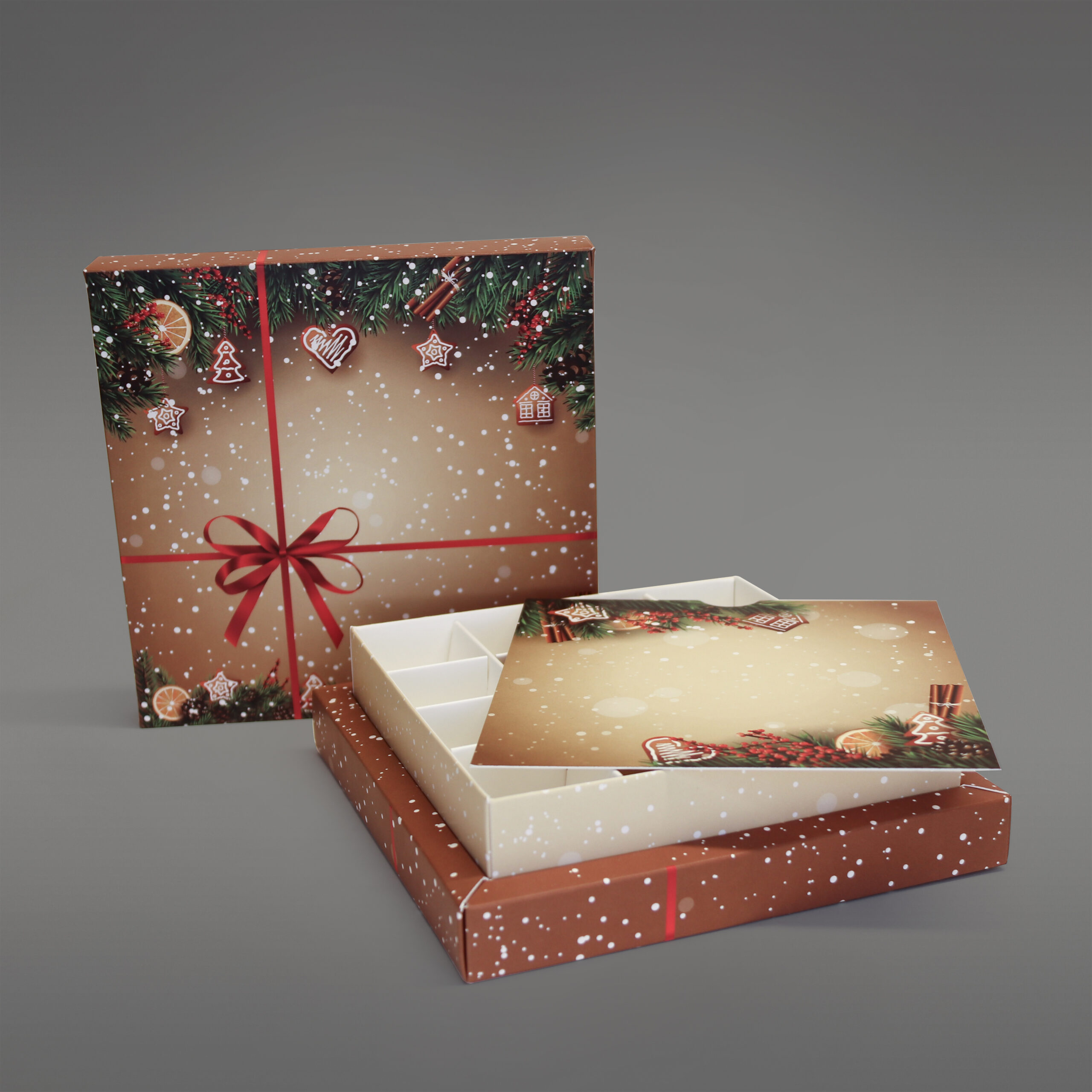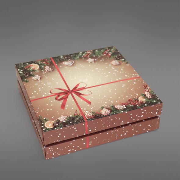 I denne konfektesken følger det med kryssinnlegg, forhøyet bunn og toppark. Esken kommer ferdig montert.