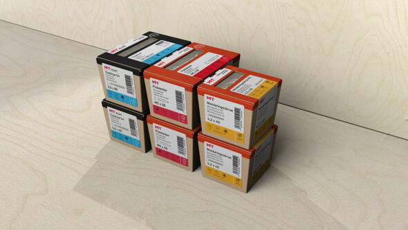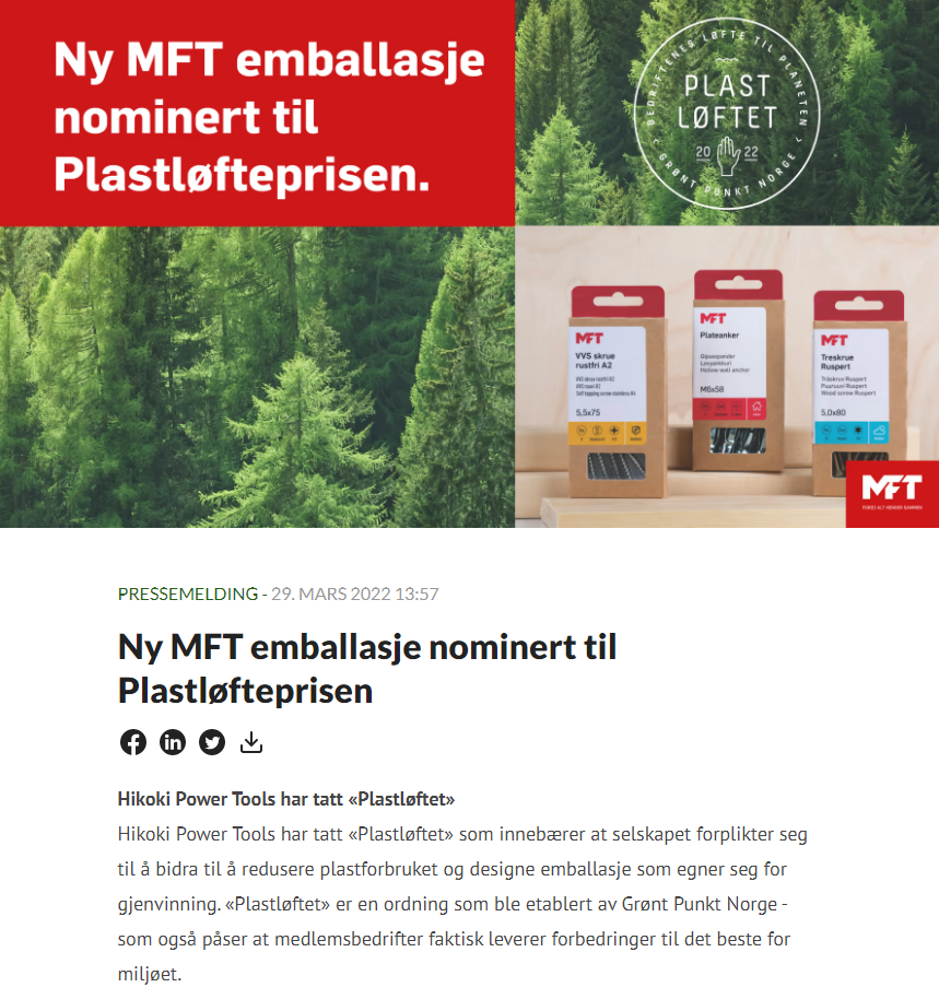 Vi produserer nå blisterpack-systemet i form av cartonblisters, altså miljøtilpasset. Etter en tid ble HITACHI solgt til HiKOKI Power Tools, og vi utvikler og produserer nå også skrueeskene i kartong, noe som tidligere ble laget i kraftig plast.