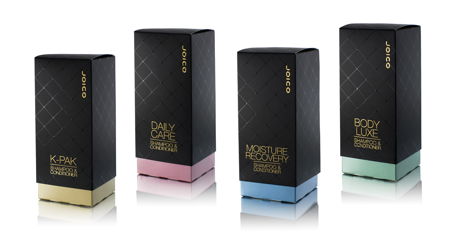 I prosjektet for Joico valgte vi kombinasjonen spotlakk, soft touch og gull-foliering.