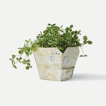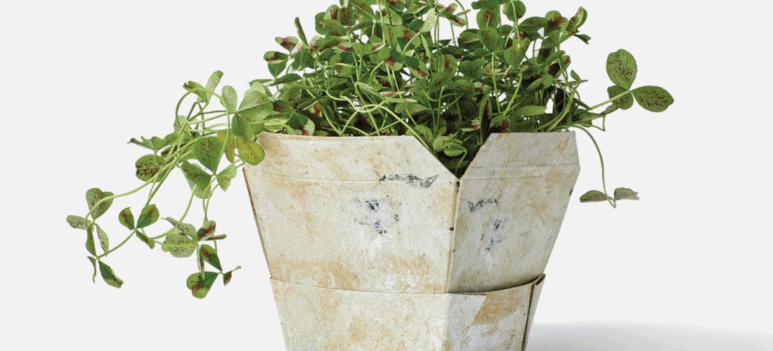 Miljøpotten Gisela har kanter som kan brettes ned for å skjule jorden. Potten står fint både ute og inne, men foten liker seg best inne så den slipper for mye regn og hardt vær. Den miljøvennlige potten rommer planter som har opp til 14 cm diameter potte som pottes om, eller aller helst plantes planten direkte i Flowerline.