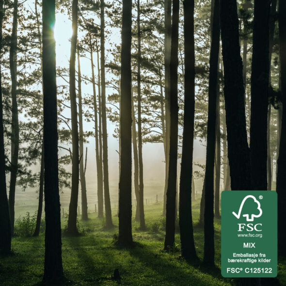 I vår emballasjeproduksjon benytter vi råkartong fra nordisk bærekraftig skog. Skogene forvaltes med hensyn til biologisk mangfold, karbonbinding og sporbarhet, noe som gir oss tilgang til kortreiste og dokumenterte fiberressurser.